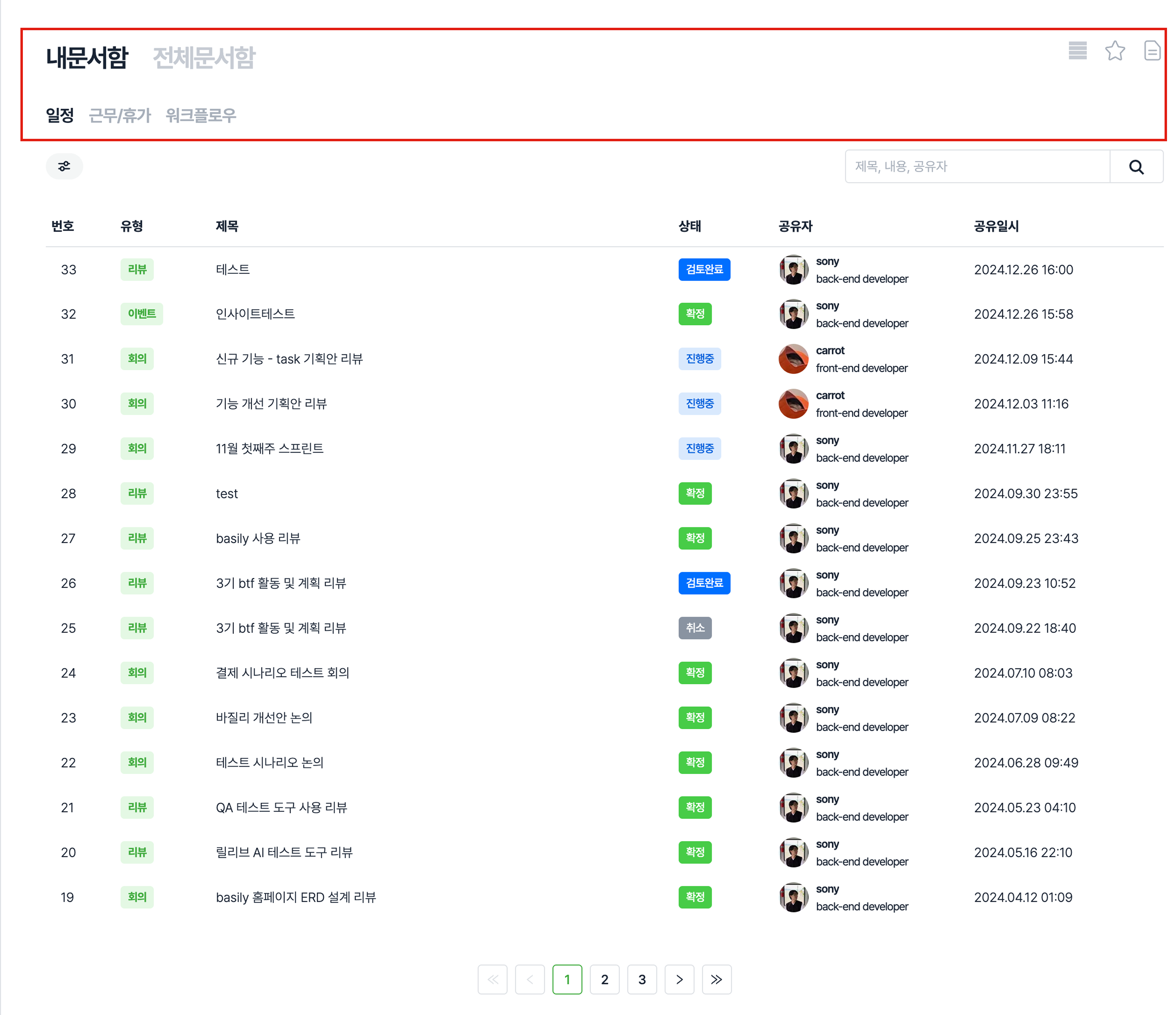 문서함을 리스트 형태로 조회할 수 있습니다.