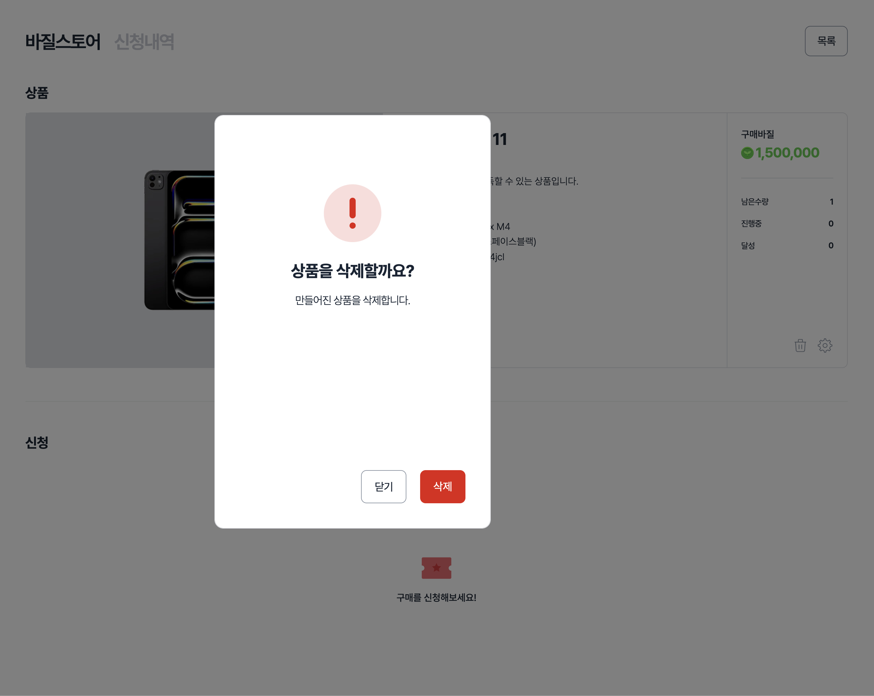 진행중인 신청이 있는 경우 삭제할 수 없습니다.