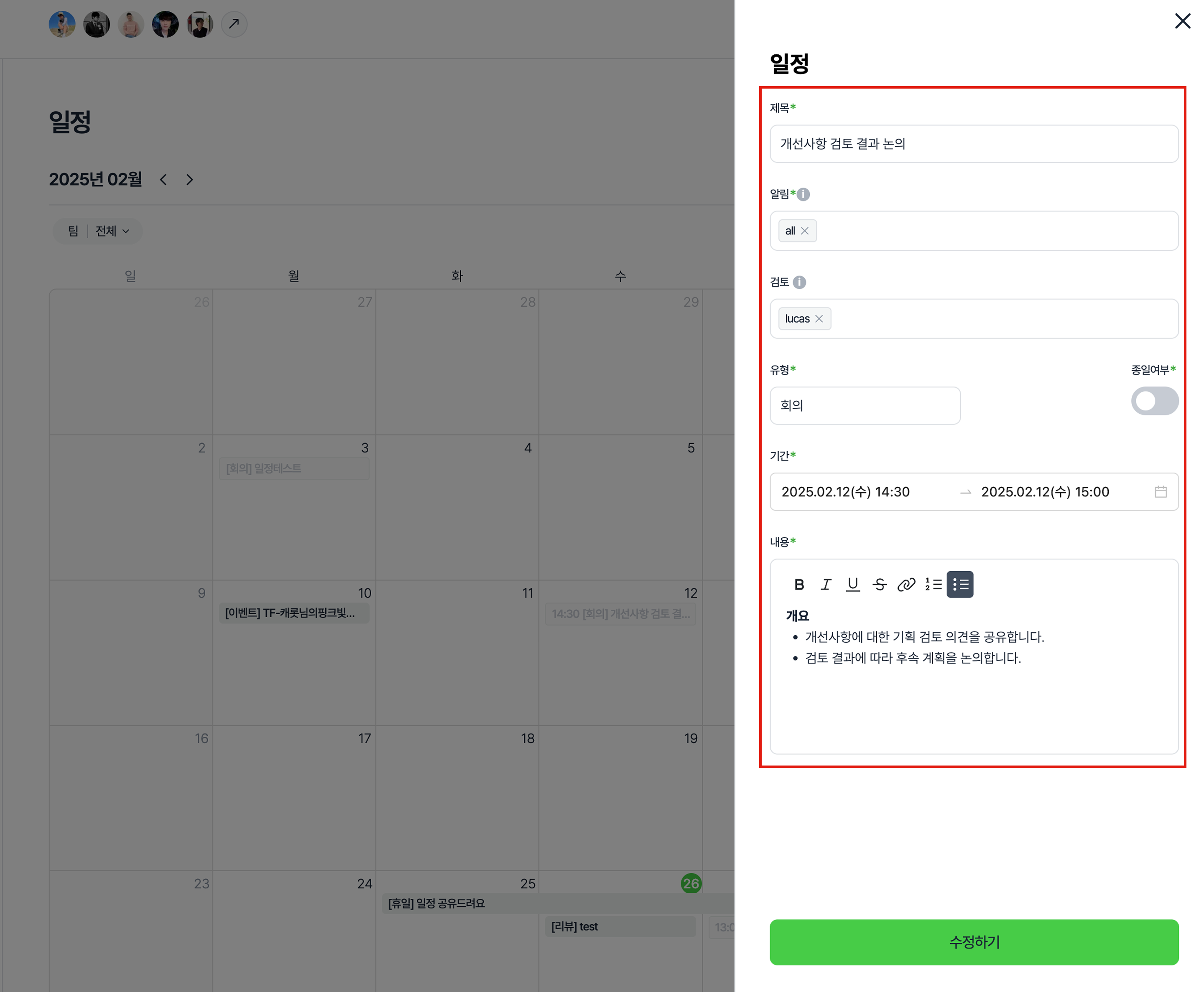 단계 3) 일정의 상세 정보를 수정해주세요.