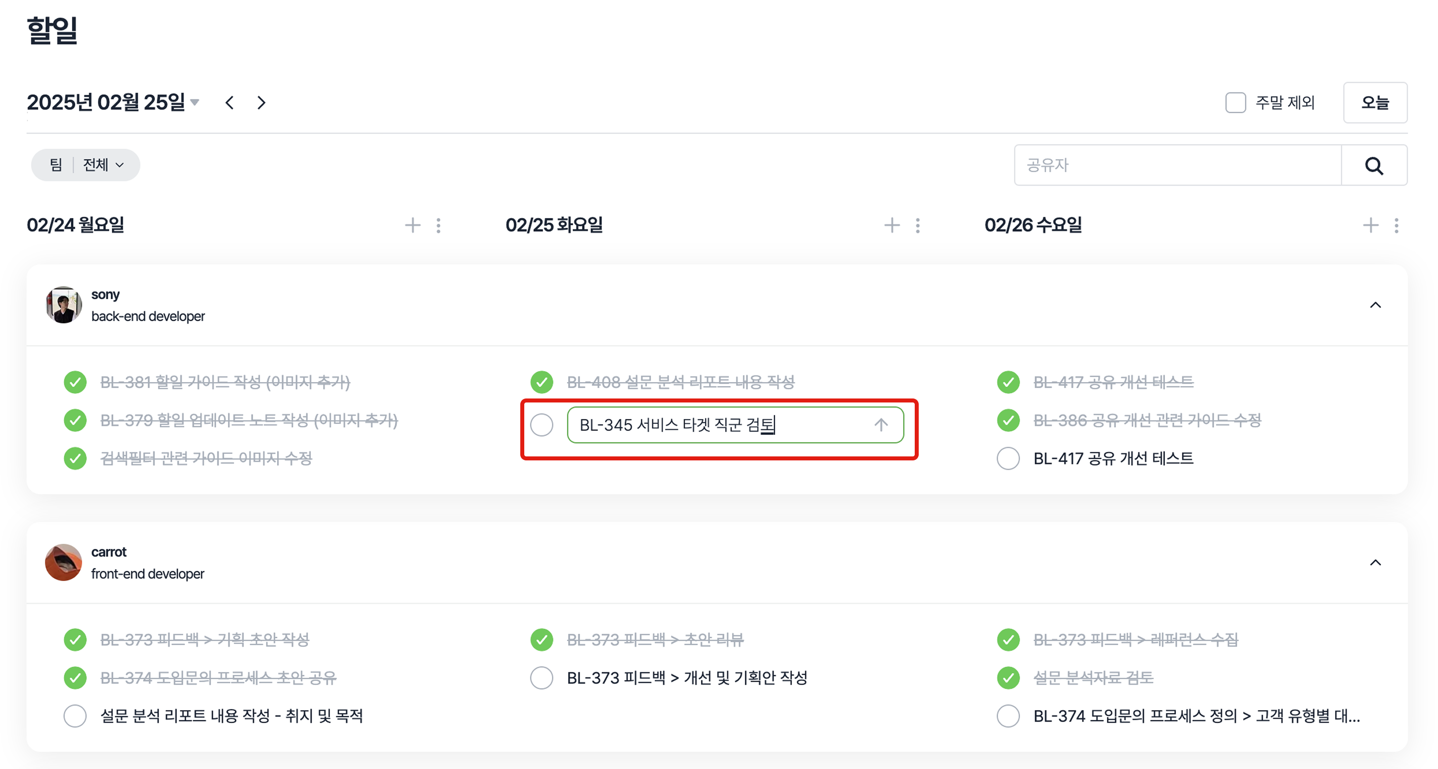 할일의 상세 조회 화면에서도 동일하게 체크리스트의 내용을 변경할 수 있습니다.