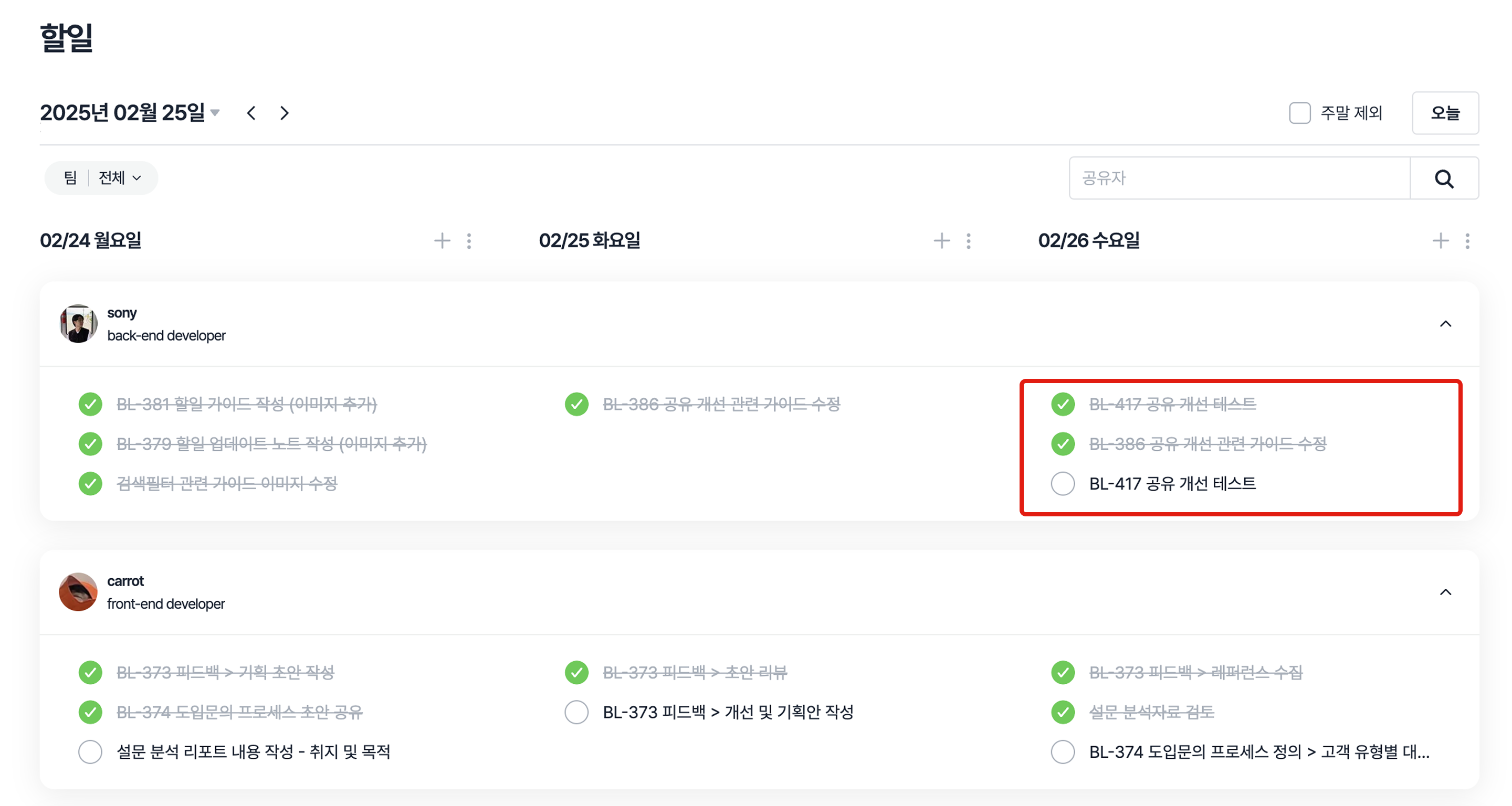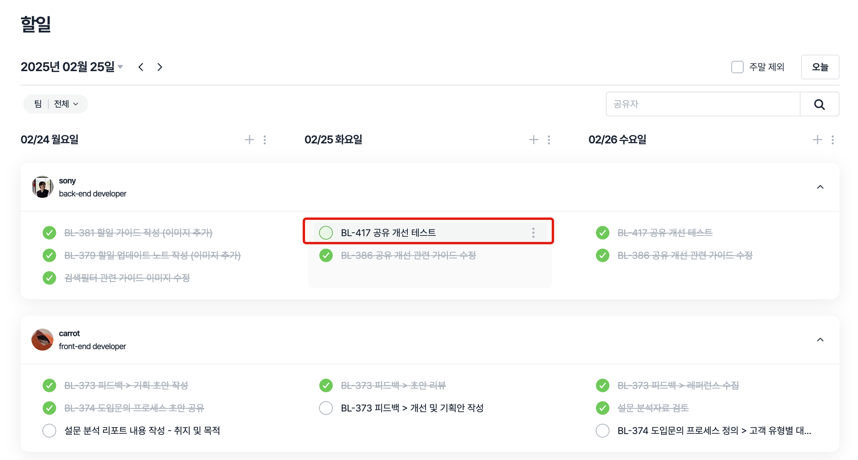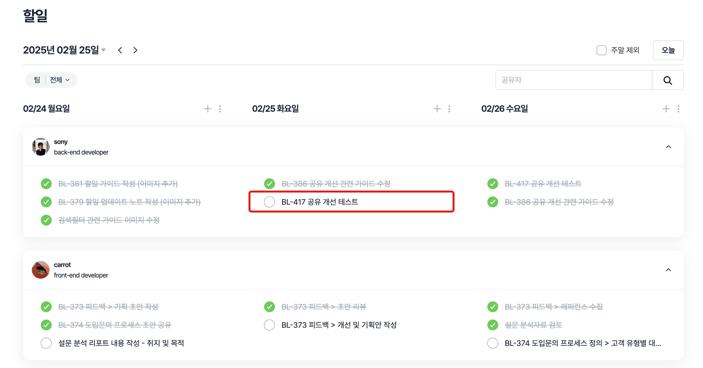 단계 1) 협업 > 할일 목록 화면에서 날짜를 변경할 체크리스트를 선택합니다.