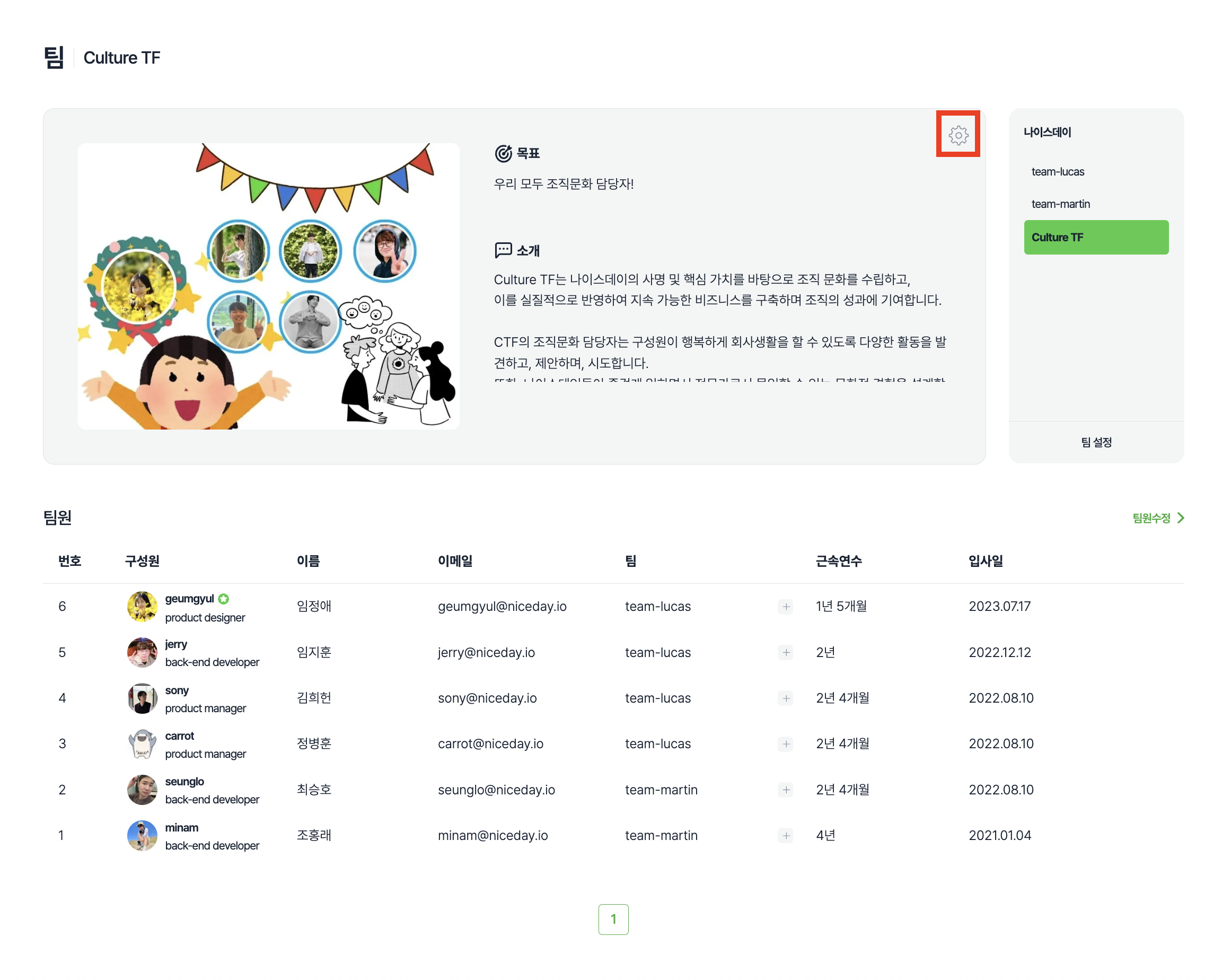 단계 2) [팀 정보 수정] 아이콘을 클릭해주세요.