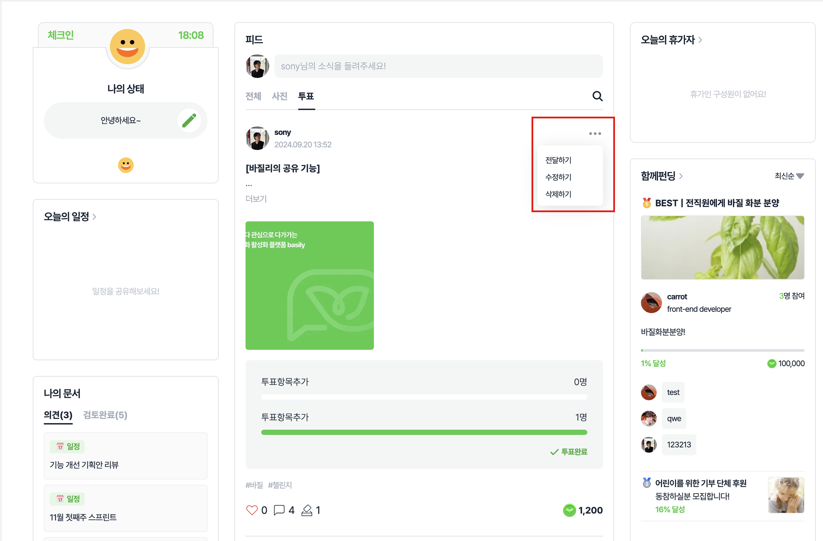 단계 2) 피드의 내용을 수정할 수 있습니다.