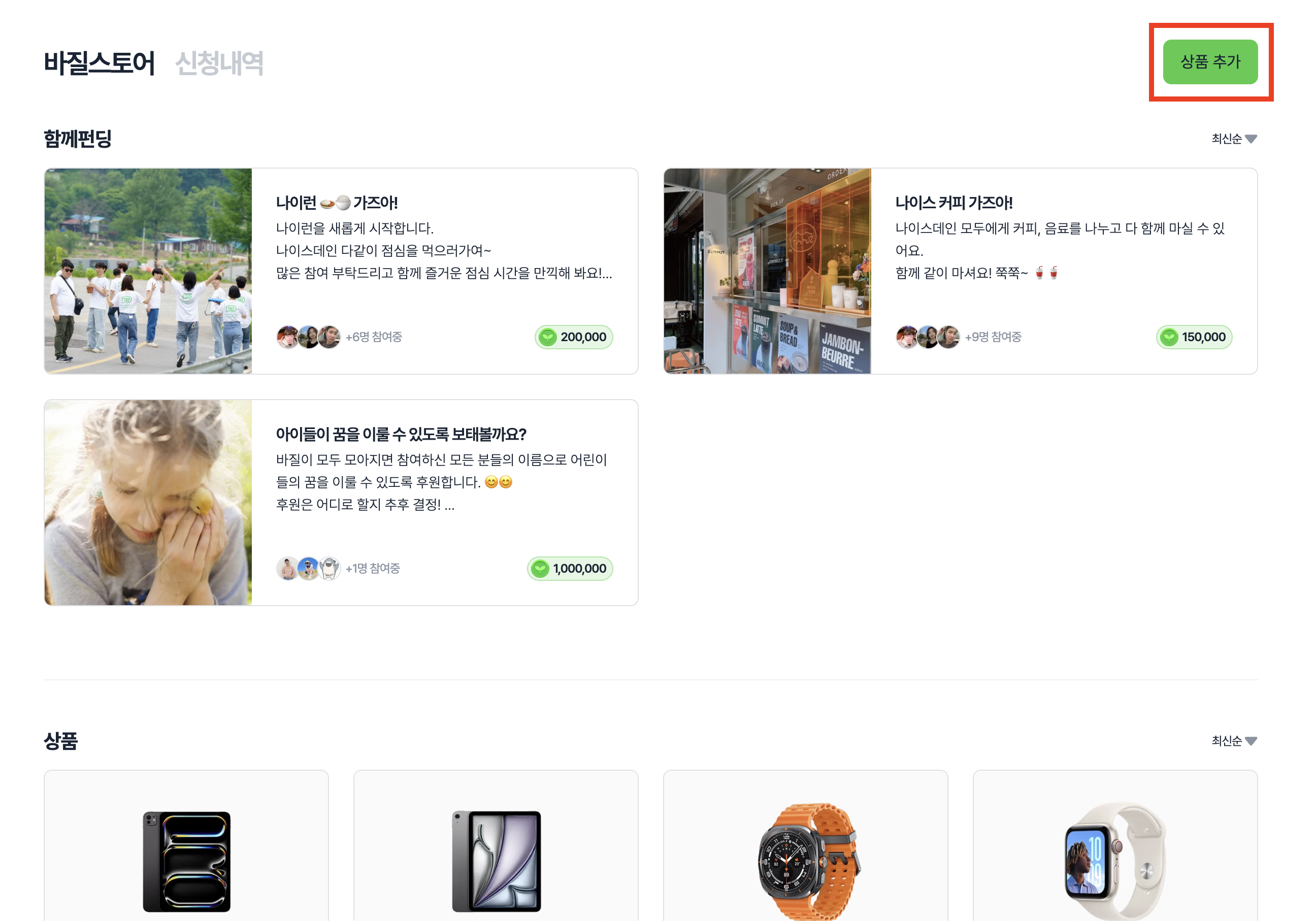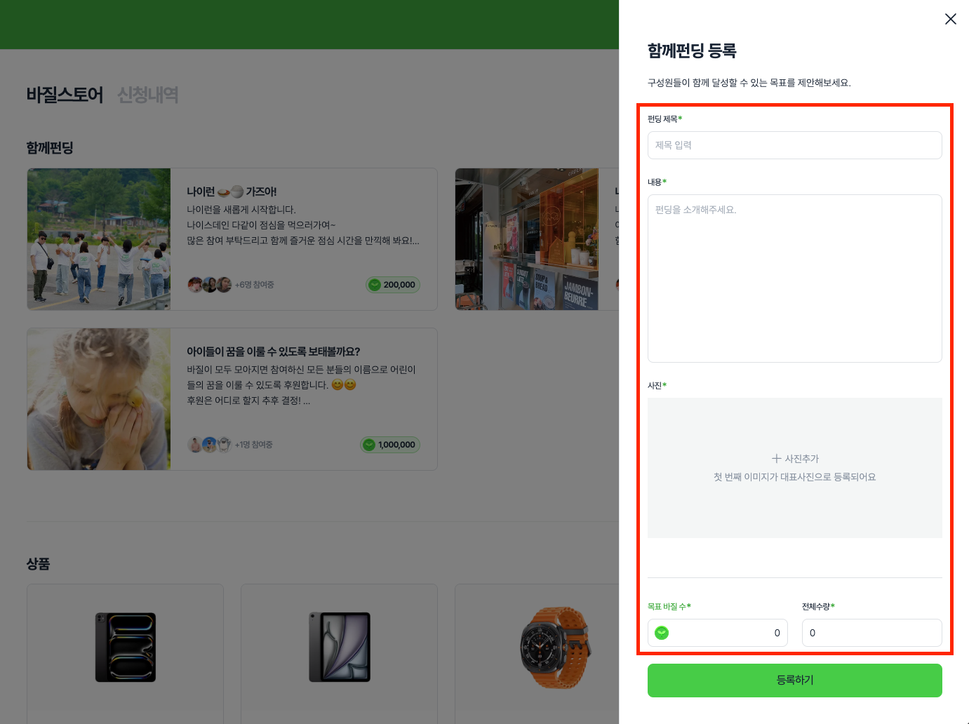 바질스토어-함께펀딩 목록에 노출될 펀딩 제목, 내용, 사진을 추가해주세요.