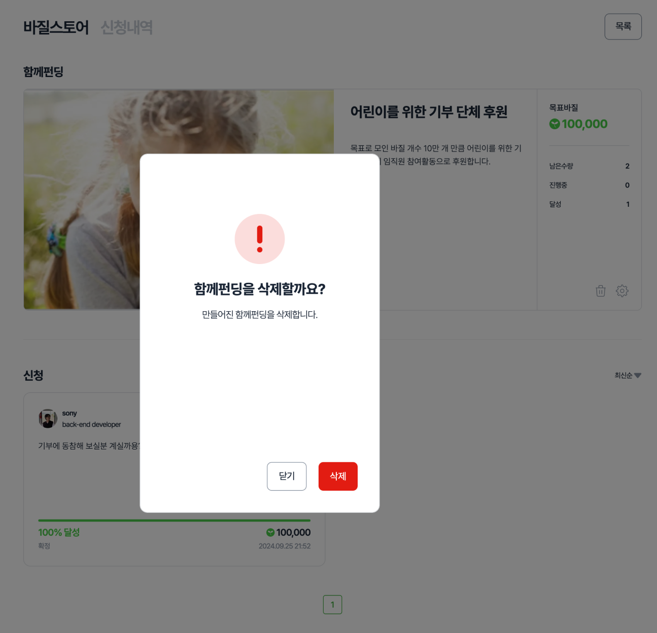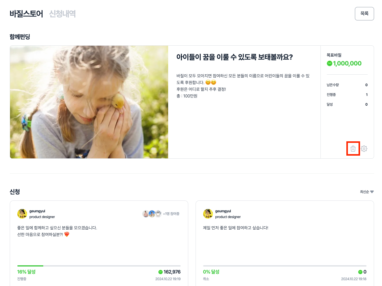 등록된 함께펀딩 상품을 삭제할 수 있습니다.