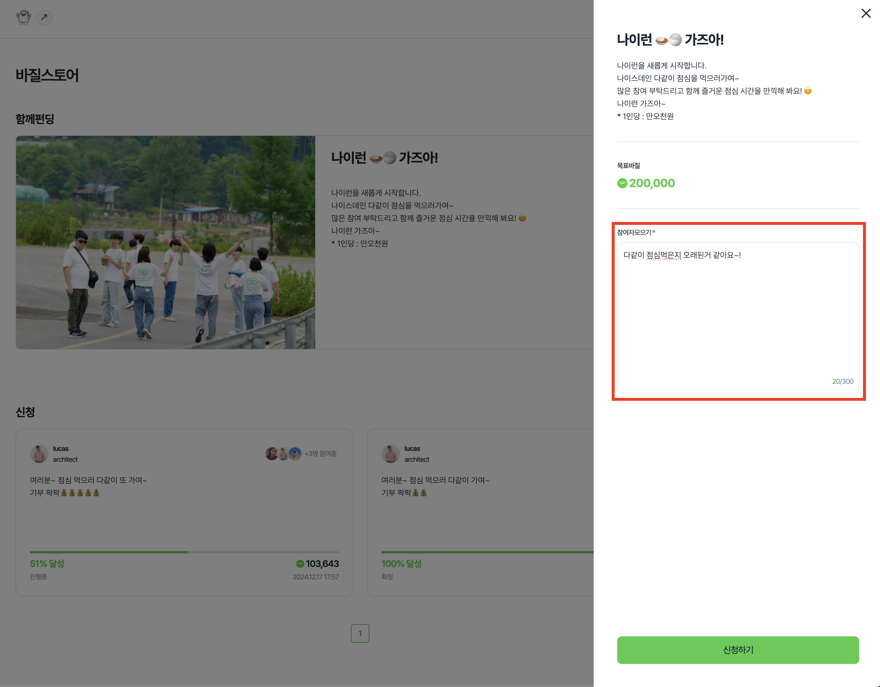 조회중인 함께펀딩 신청 화면이 노출됩니다.
