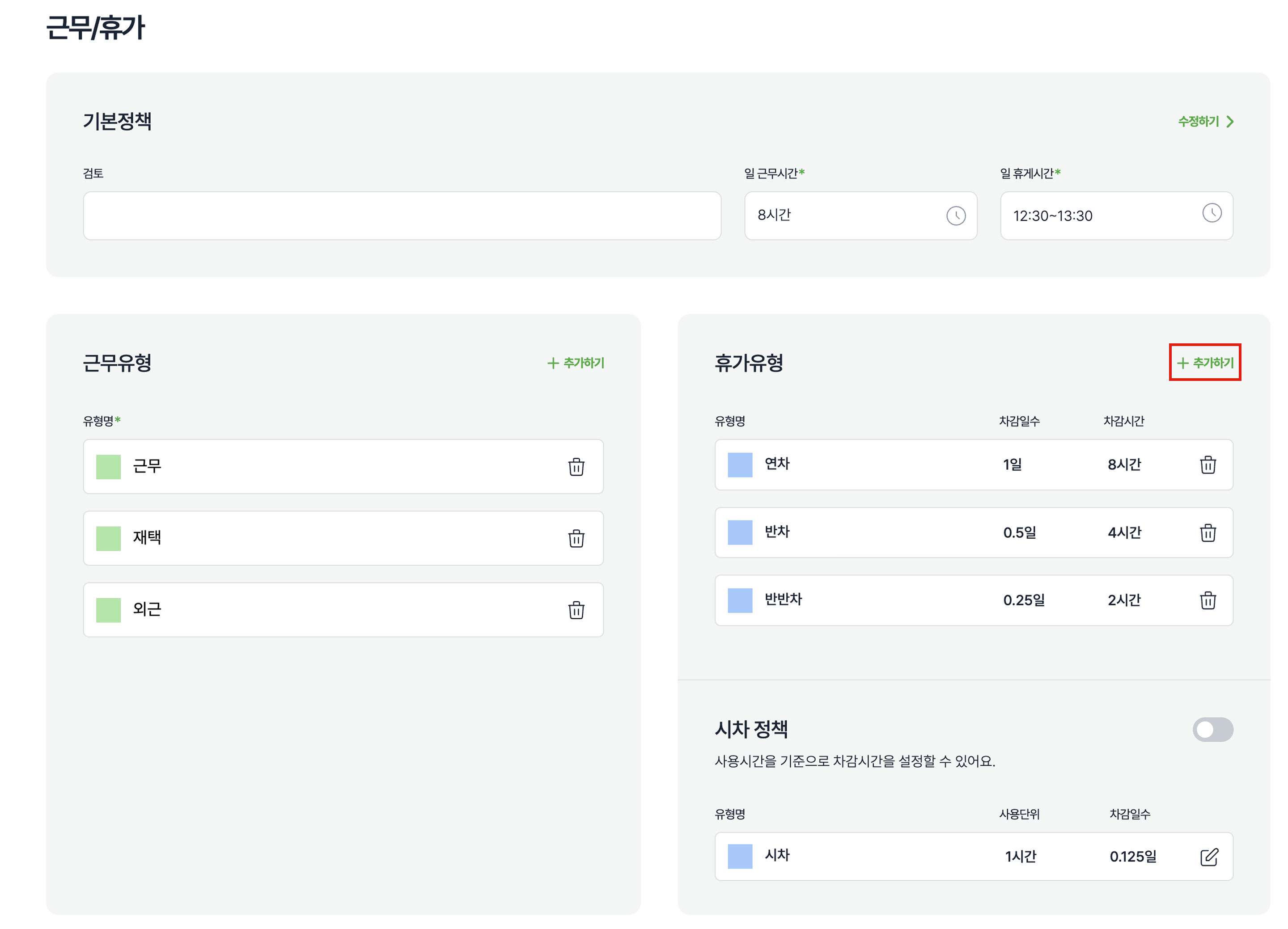휴가 유형 추가 화면이 노출됩니다.
