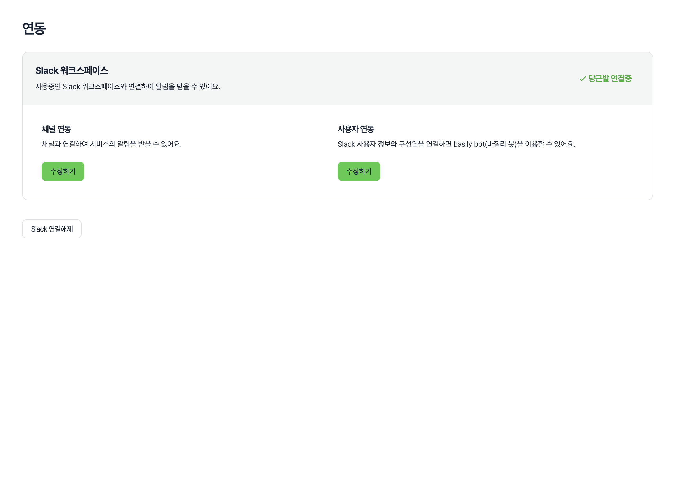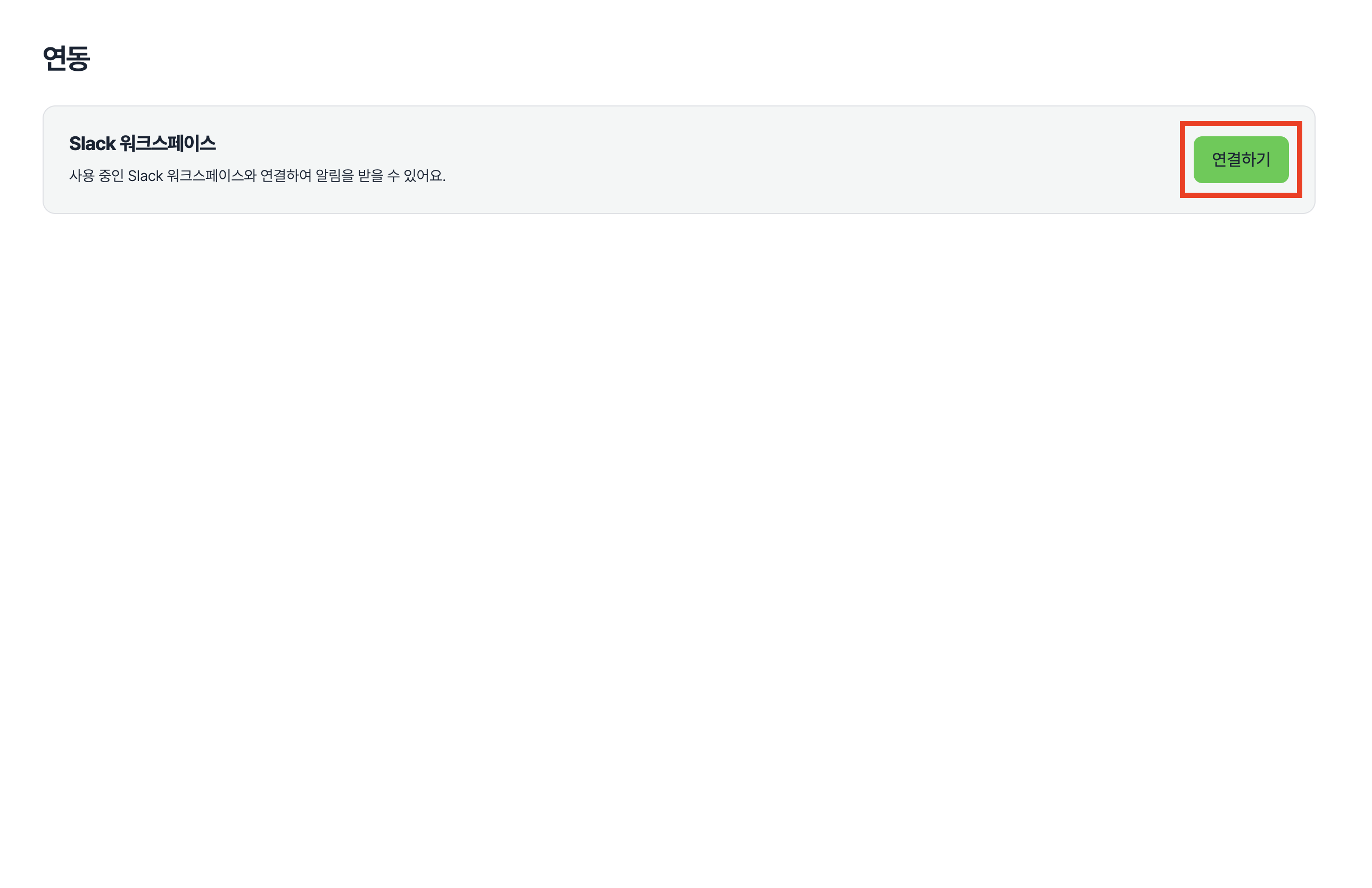 단계 1) 설정 > 서비스 > 연동 메뉴에서 [연결하기] 버튼을 클릭해주세요.